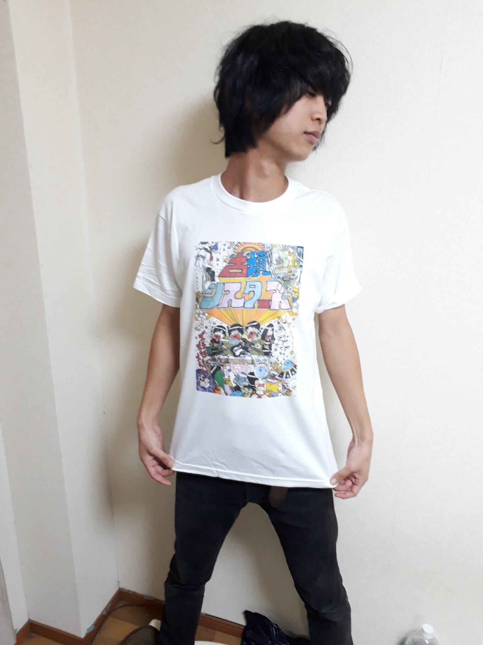 古墳シスターズの結成7周年記念Tシャツ。松山が着ているのはサイズL。身長179㎝。